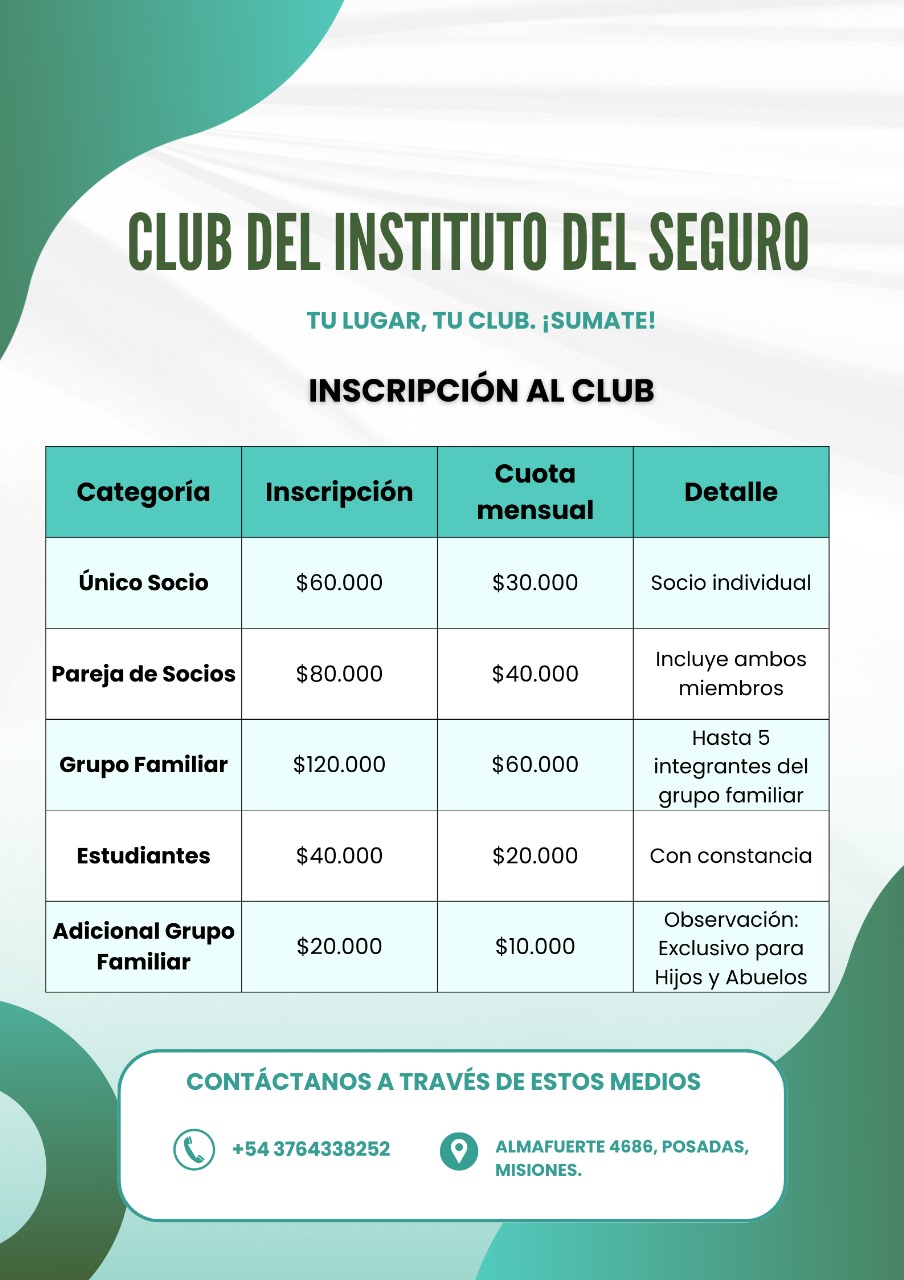 El Club del Instituto del Seguro ofrece espacios completamente renovados para que disfrutes de un día diferente en plena ciudad de Posadas. Piscina, quinchos, canchas, salón de eventos y áreas verdes diseñadas para el descanso y la recreación.